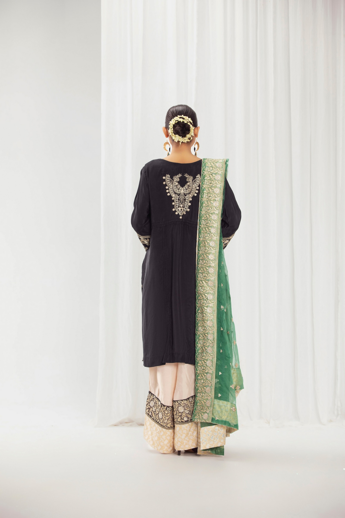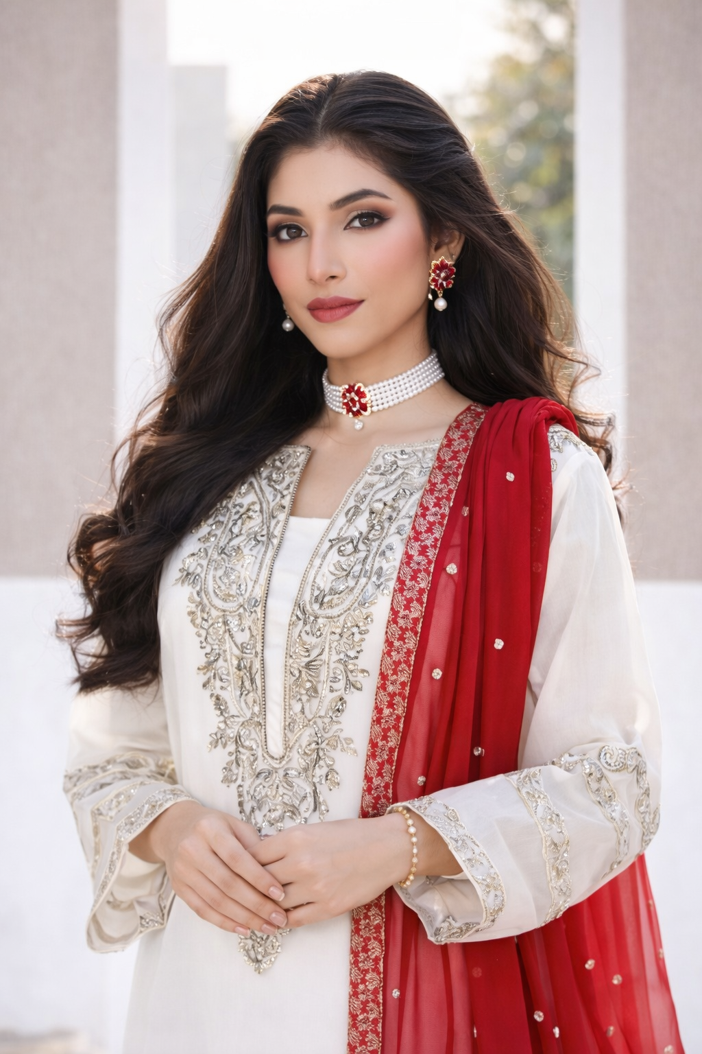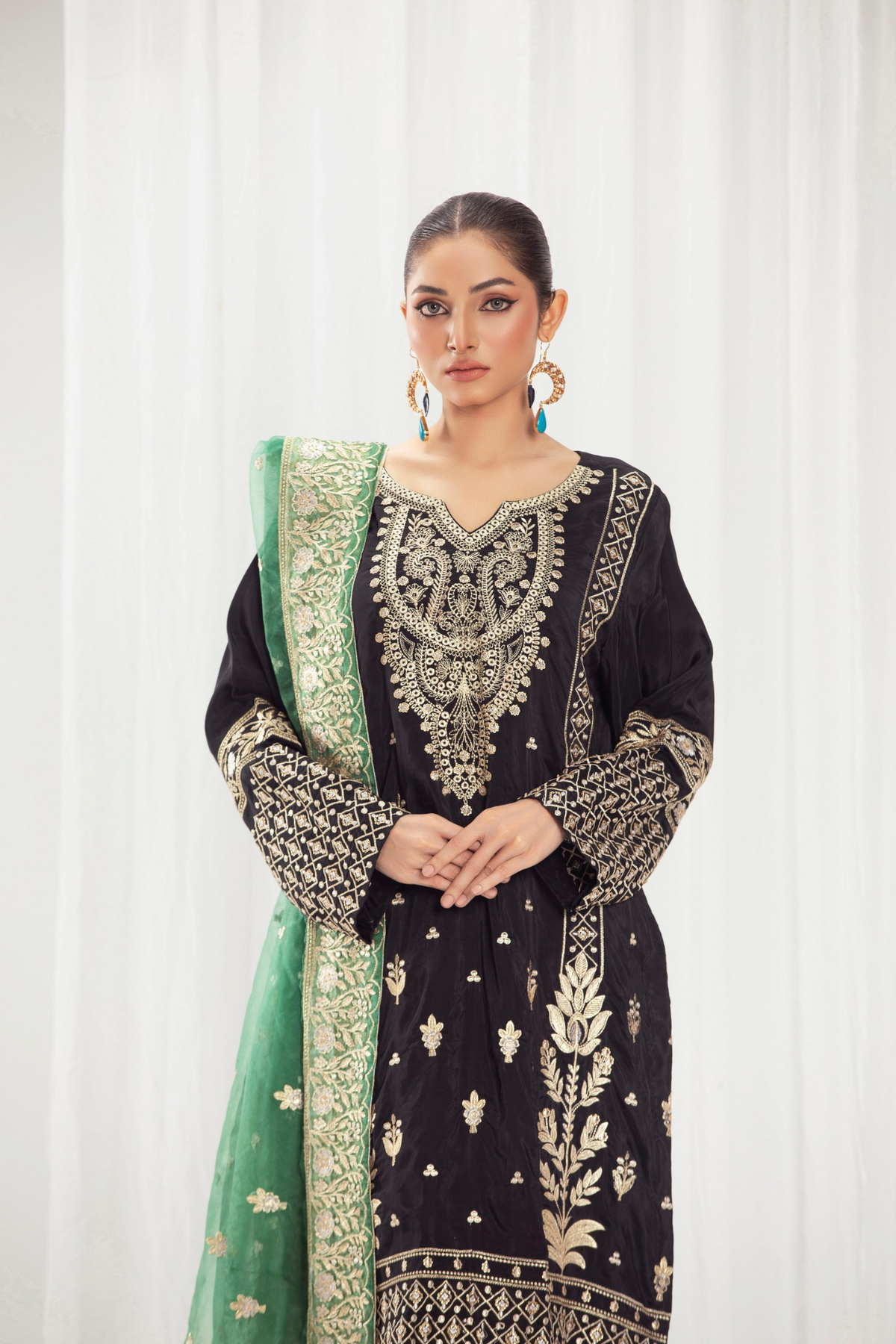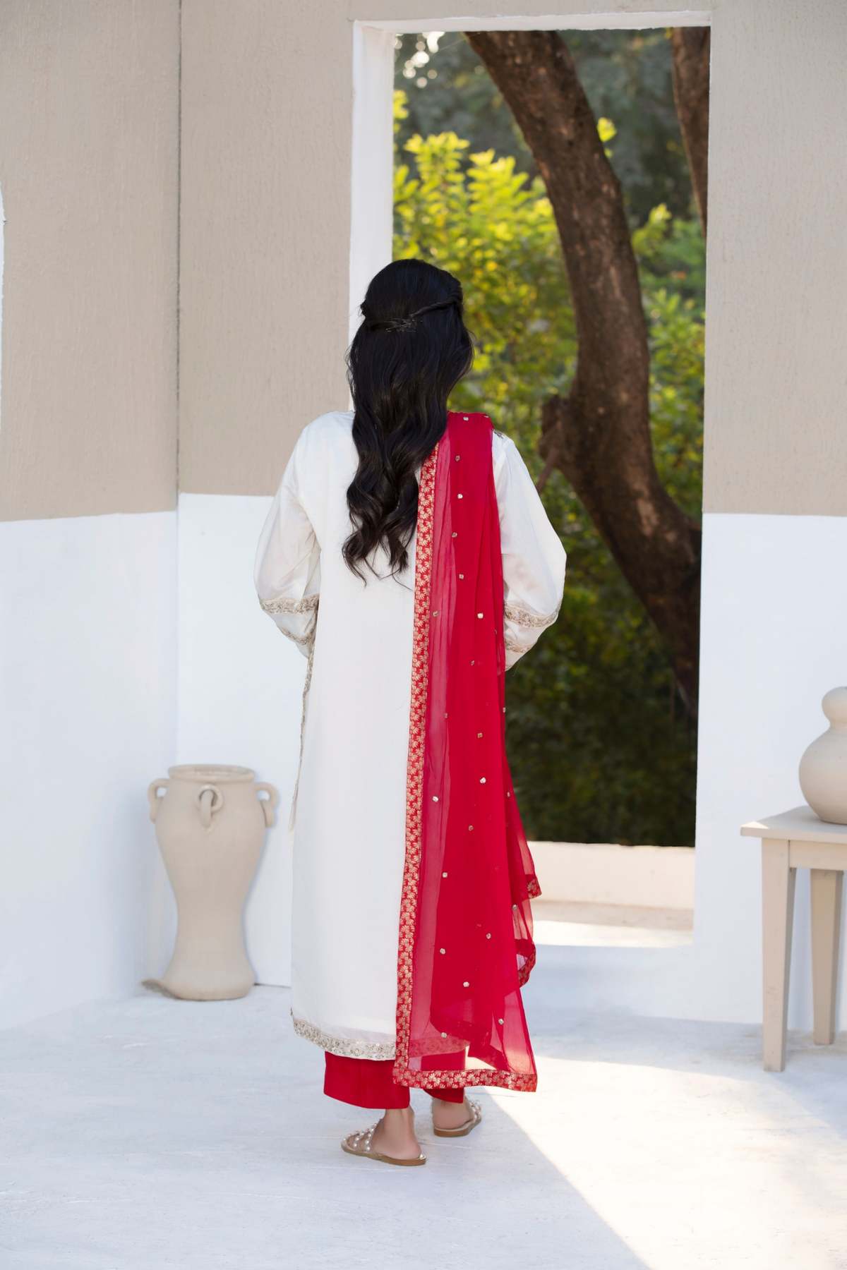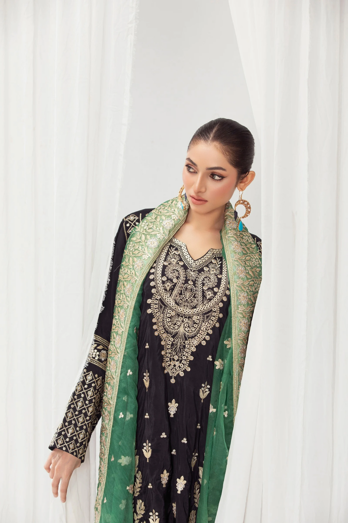 Paired with a graceful organza dupatta adorned with original embroidery, this ensemble is ideal for festive celebrations and semi-formal occasions. Available stitched or in custom sizing, Taslima Pink drapes effortlessly, radiating refined femininity and understated charm.
